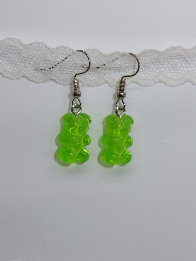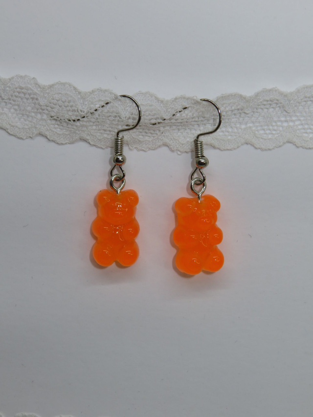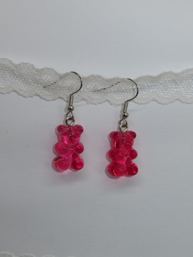 Paire de boucle d'oreille ourson transparent, différente couleur de disponible, sur monture argentée.