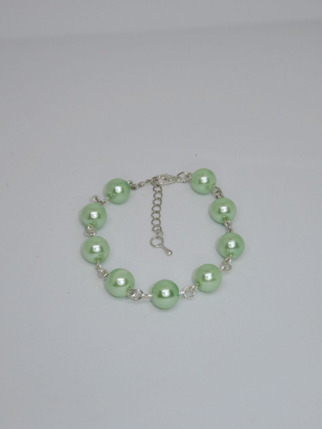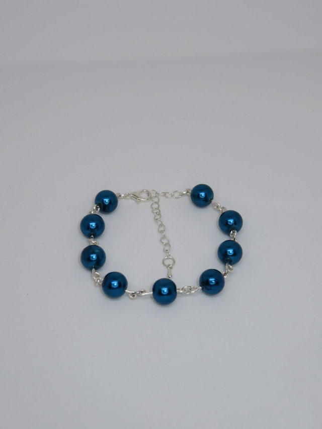 Bracelet en perle de verre nacrée 10 mm, monté sur fil de cuivre demi-dur anti-ternissement.