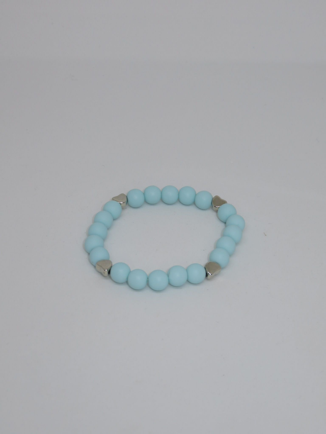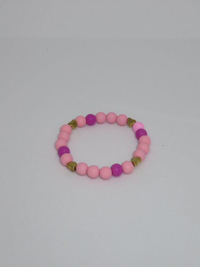 Bracelet en perle acrylique et perle cœur acrylique; sur fil élastique.