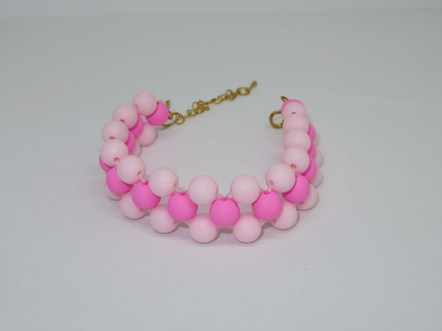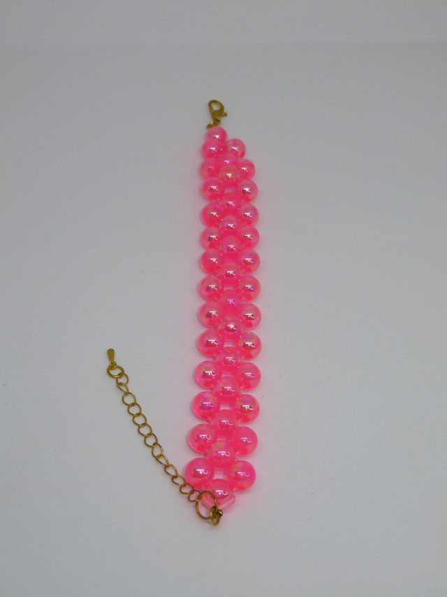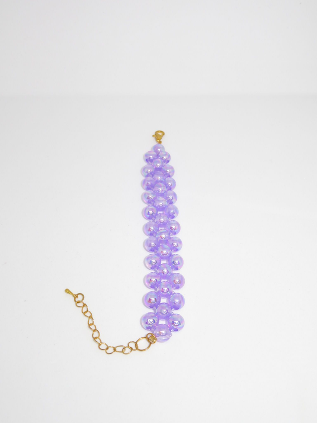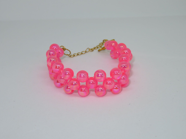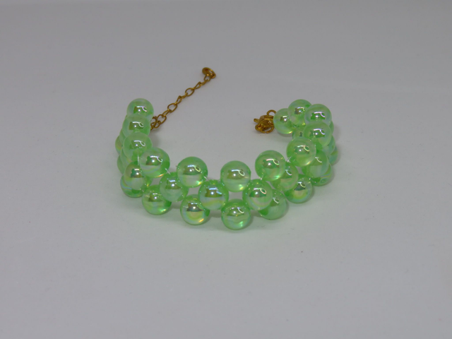 Bracelet en perle acrylique, tressé sur fil de cristal élastique.