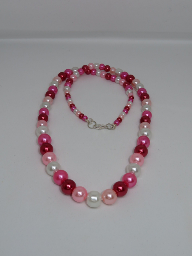 Collier en perle de verre nacrée, avec des perle de 4. 6. 8 et 10 mm avec 60 cm de perle.
