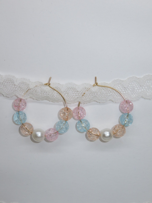 Photo 1 : Perle en verre Rose et Bleu avec perle acrylique dorée.
